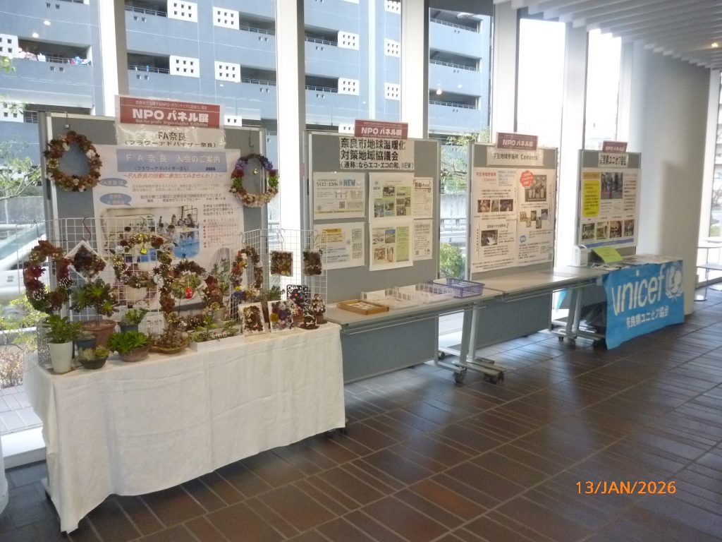 1月11日から2月6日まで奈良市ボランティアインフォーメーションセンターでNPOパネル展を開催しています。是非お立ち寄りください。